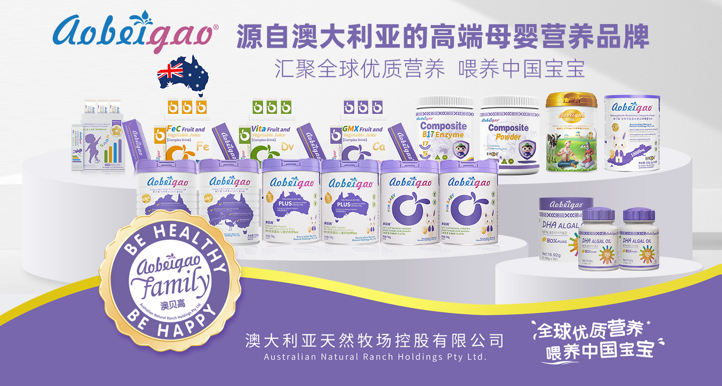 Aobeigao澳貝高是專注于嬰童營養(yǎng)健康的品牌,隸屬于澳大利亞天然牧場控股有限公司旗下的高端兒童營養(yǎng)食品品牌,由其子公司中童營養(yǎng)品(廣州)有限公司全權(quán)運營。其研發(fā)團隊與國內(nèi)外專業(yè)營養(yǎng)研究機構(gòu)緊密合作,結(jié)合中國嬰童的綜合體質(zhì),強調(diào)配方基于《中國居民膳食指南》嬰童要求,致力于研發(fā)更適合中國嬰童的營養(yǎng)食品。