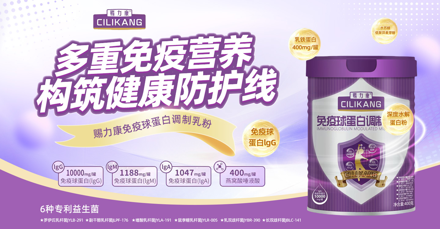 賜力康免疫球蛋白調(diào)制乳粉,多種核心營養(yǎng),科學配比,每罐添加乳鐵蛋白400mg、免疫球蛋白IgG 10000mg、免疫球蛋白IgM 1188mg、免疫球蛋白IgA 1047mg、燕窩酸400mg,還添加6種專利益生菌、牛初乳、水蘇糖、低聚異麥芽糖、深度水解蛋白粉、鈣鐵鋅硒等,多重免疫營養(yǎng)標本兼顧,為全家人構(gòu)筑健康第一道防護線。