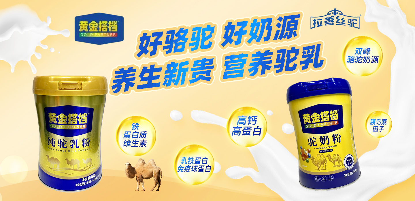 黃金搭檔駝奶粉,源自內(nèi)蒙阿拉善山腳下自然牧場,精選雙峰駱駝奶源。駝奶富含鈣、鐵、蛋白質(zhì)、維生素、免疫球蛋白、類胰島素等營養(yǎng)素,科學配比,均衡營養(yǎng)。低乳糖、不刺激,更多人營養(yǎng)補充的理想之選。