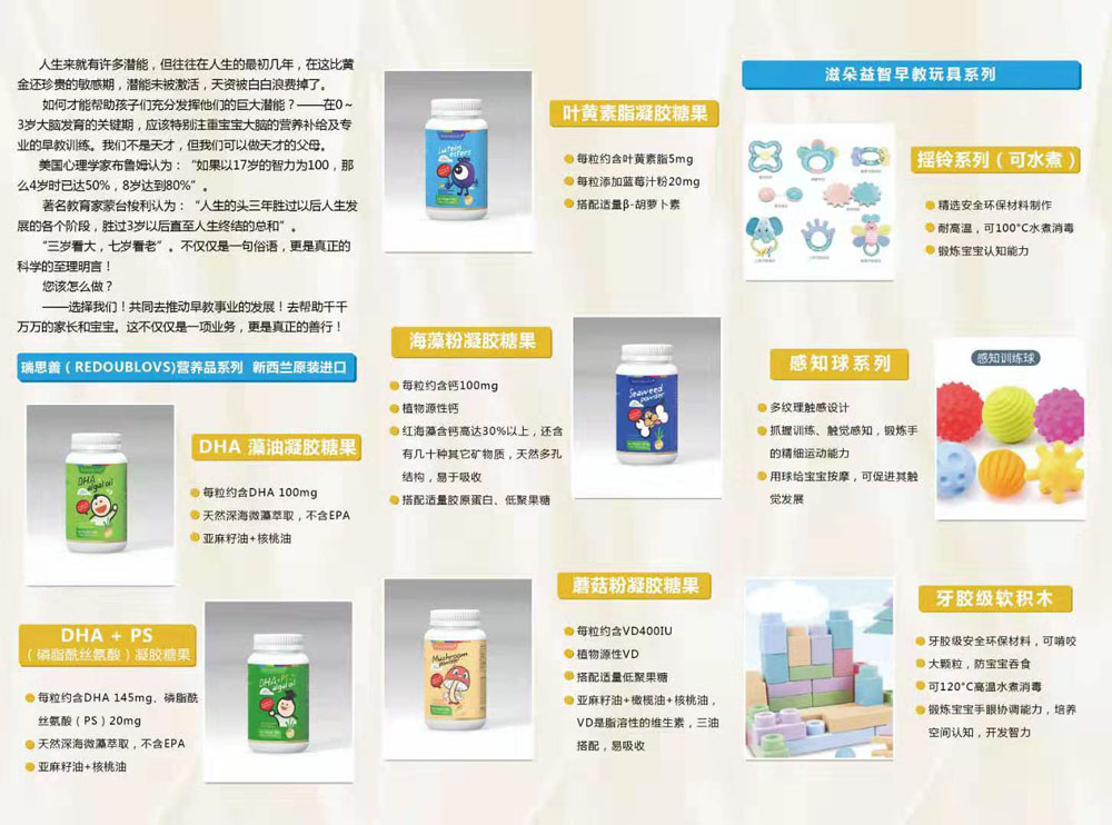 主營產(chǎn)品:瑞思善營養(yǎng)品,滋朵早教益智玩具 產(chǎn)品(11個)新聞(29條)