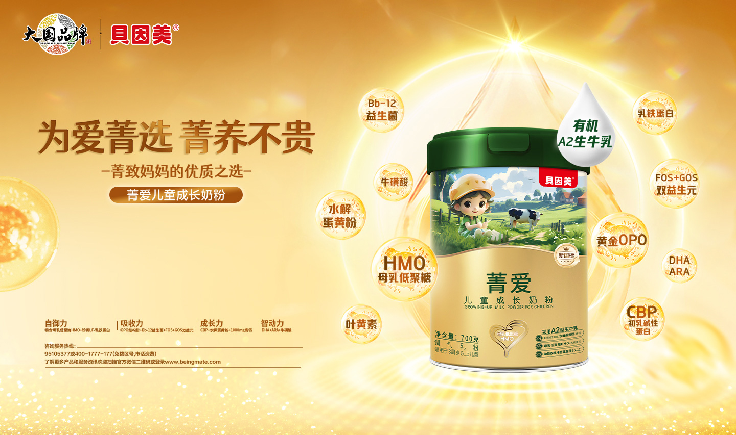 美廬優(yōu)培幼兒配方奶粉,優(yōu)培草飼奶源,好奶源造好奶粉!五大營養(yǎng)群,超牛保護(hù)力、傧Γ旱途郯肴樘恰⒌途酃、乳雙歧桿菌HN019;②骨骼力:酪蛋白磷酸肽、維生素D、維生素K;③自護(hù)力:乳鐵蛋白、核苷酸;④認(rèn)知力:膽堿、牛磺酸;⑤視護(hù)力:葉黃素、維生素A。全面營養(yǎng)守護(hù),守護(hù)成長健康,萬千媽媽的信賴之選!