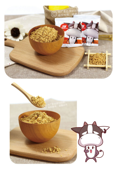 方廣寶寶肉酥選用新鮮肉源進行加工制作,充分保留了食物的鮮香美味,鎖住營養(yǎng)成分不流失,在肉酥中添加了各種營養(yǎng)食材,采用先進設(shè)備和現(xiàn)代技術(shù),經(jīng)先進的香酥工藝制作而成,纖維細小,入口即化,容易消化吸收,是寶寶理想的佐食食品。
