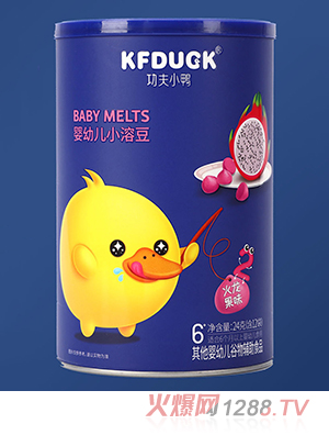 功夫小鴨yingye小溶豆系列,有獼猴桃味、香蕉胡蘿卜味、火龍果味、原味等,共四種口味,甄選食材,精湛制作,營養(yǎng)高度保留,入口即溶,好吃不膩。