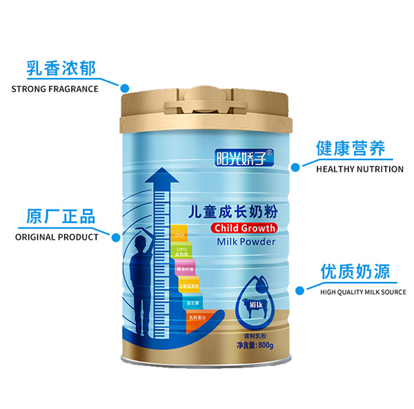 陽光嬌子兒童成長奶粉甄選天然優(yōu)質(zhì)奶源,采用先進(jìn)的生產(chǎn)工藝制作,科學(xué)配比多種營養(yǎng)成分,富含豐富的乳鐵蛋白、水解蛋黃粉、DHA,添加OPO,膳食纖維、低聚果糖、低聚半乳糖、水蘇糖,全面滿足兒童成長需求。