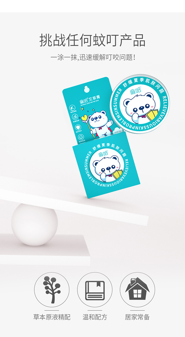 麻哈艾草膏產(chǎn)品,主要針對蚊叮后的皮膚外搽使用,可以有效的舒緩蚊蟲叮咬后的皮膚劇癢,滋潤舒緩,微涼舒適。蚊叮蟲咬不適,早涂抹早輕松草本精配低敏配方,溫潤無刺激。寶寶yunf敏感嬌嫩肌膚均可安心使用,是居家常備,出游佳選。