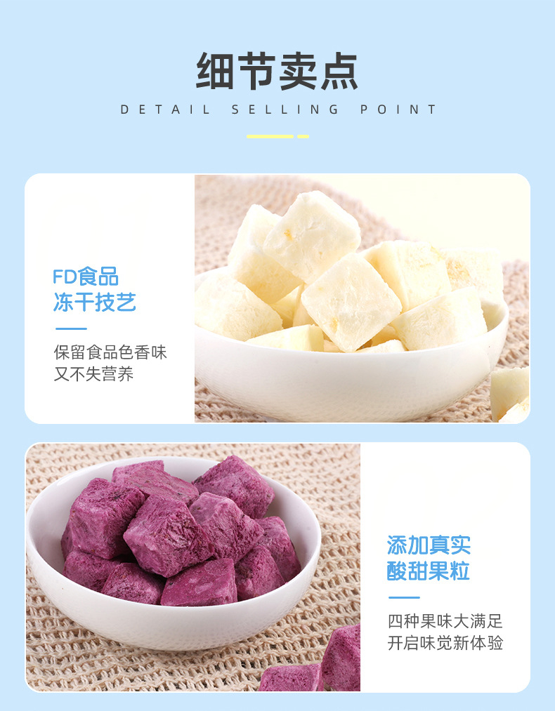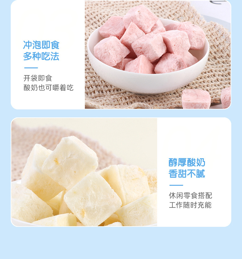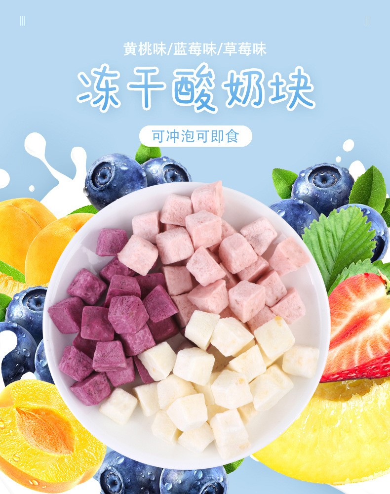 OEM貼牌沖泡凍干酸奶塊1.2g/塊果粒益生菌塊即食代加工口味定制