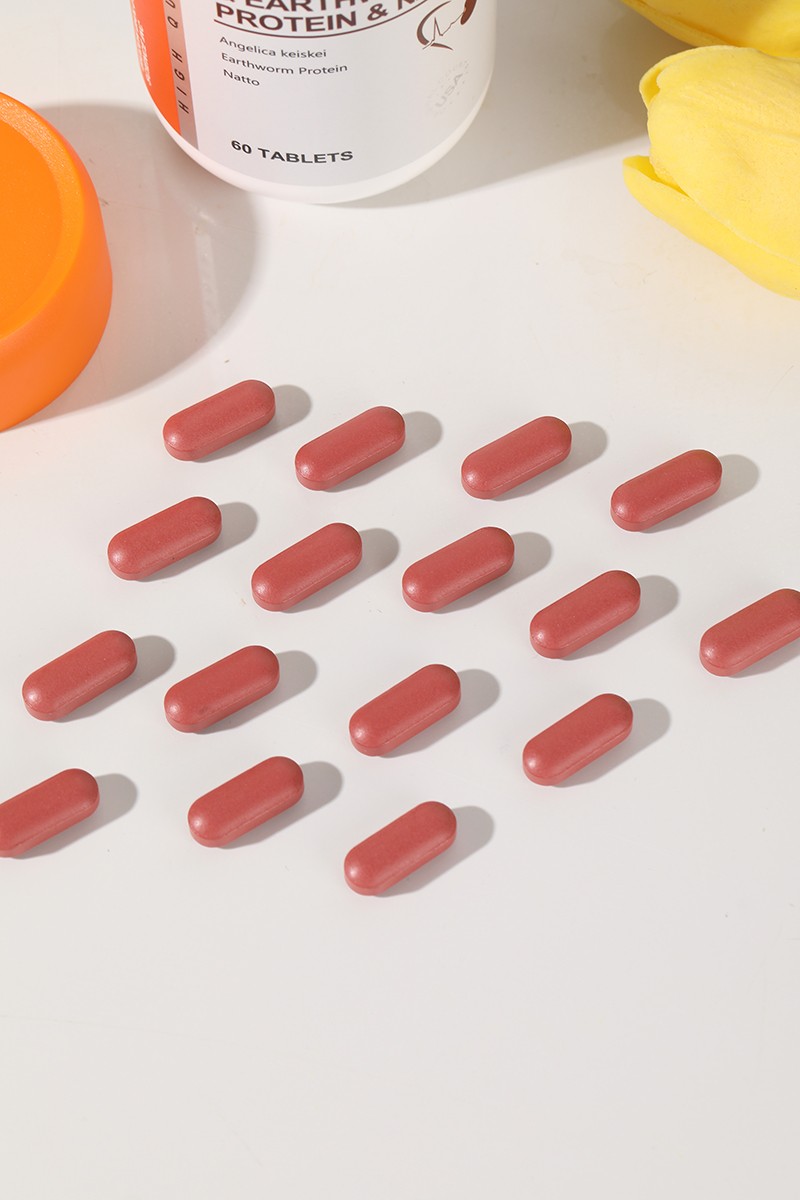 配料:山梨糖醇、明日葉20.25%、紅曲米、納豆12.5%、玉米淀粉、甜菜堿(天然提取)、地龍蛋白1.25%、微晶纖維素。