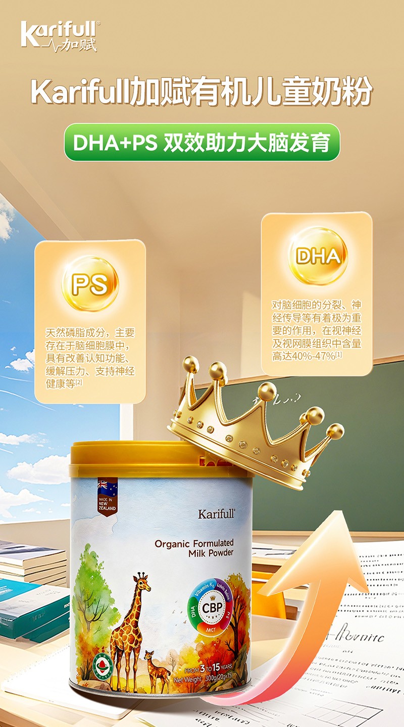 加賦有機兒童MCT配方奶粉通過中紐雙重有機認證,專為3-15歲兒童設(shè)計。產(chǎn)品以高營養(yǎng)密度和高吸收率為特點,核心“5維成長體系”全面支持骨骼、大腦、視力、免疫及吸收,助力孩子成長黃金期的營養(yǎng)需求。