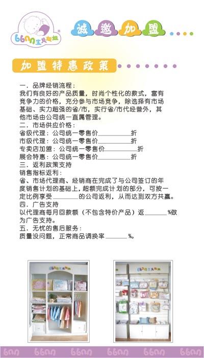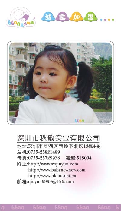 目前,“寶貝妞妞”(babynewnew)正在以特許加盟的模式迅速發(fā)展?fàn)畲。秋韻人愿為加盟伙伴一同將“寶貝妞妞”(babynewnew)打造成具有影響力的國(guó)際品牌。