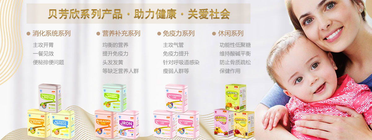 “貝芳欣”系列產(chǎn)品覆蓋消化系統(tǒng)、免疫系統(tǒng)、營養(yǎng)系列等多種母嬰健康營養(yǎng)食品和日常護理用品,采用臺灣先進技術(shù)、科學配方和進口原料,其優(yōu)良品質(zhì)深受母嬰消費者的推崇。