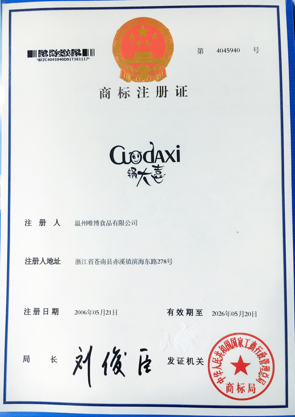 鍋大喜是溫州唯博食品有限公司旗下品牌,公司創(chuàng)辦于2012年,座落于享有“紫菜之鄉(xiāng)”美譽的蒼南縣赤溪鎮(zhèn),占地面積5000多平方米,建筑面積3000多平方米,現(xiàn)擁有員工95人,其中專業(yè)技術(shù)人員28人。目前擁有大型淡水紫菜養(yǎng)殖生產(chǎn)基地800畝,是一家集海產(chǎn)品養(yǎng)殖、加工、銷售一條龍的企業(yè),主導(dǎo)的產(chǎn)品有韓式香酥海苔、芝麻夾心海苔、海苔卷、壽司海苔、紫菜湯等產(chǎn)品。