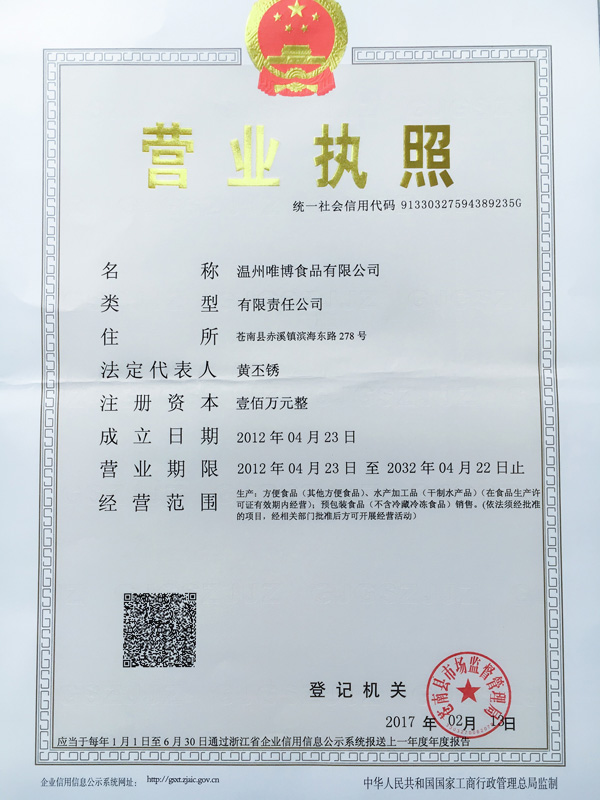 公司名稱:溫州唯博食品有限公司