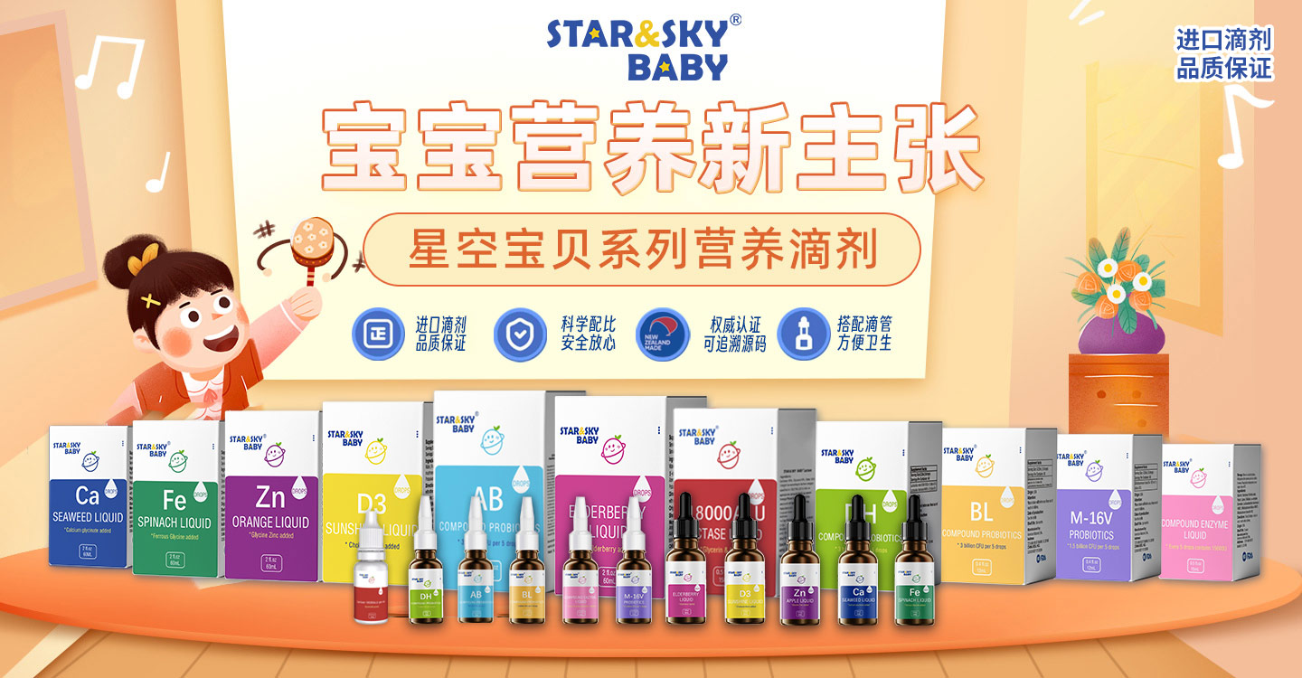 STAR&SKY BABY(星空寶貝)專為寶寶研發(fā),營養(yǎng)守護(hù)、成長不講究。擁有新西蘭、美國技術(shù)領(lǐng)先的保健品及營養(yǎng)食品生產(chǎn)企業(yè)供應(yīng)鏈。其中新西蘭生產(chǎn)企業(yè)是首批在華注冊編號的境外企業(yè)。工廠位于新西蘭最大的城市奧克蘭,擁有數(shù)字化綜合性大型工廠和獨(dú)立的科研團(tuán)隊(duì),擁有營養(yǎng)保健品、配方乳粉兩大廠區(qū),共約3.6萬平方米。工廠目前已通過PMP、HACCP、NZDMADE、NFS、ISO2000等認(rèn)證。液體鈣、鐵、鋅、D3、鈣鎂鋅、接骨木莓、戊糖片球菌、羅伊氏乳桿菌、鼠李糖乳桿菌(HN001)、乳糖酶、M-16v益生菌、BL復(fù)合益生菌、復(fù)配酶制劑(消化酶)等滴劑一經(jīng)推出,即滴即食、不卡喉,食用方便。專注寶寶健康成長,深受寶媽和寶寶的喜愛。
