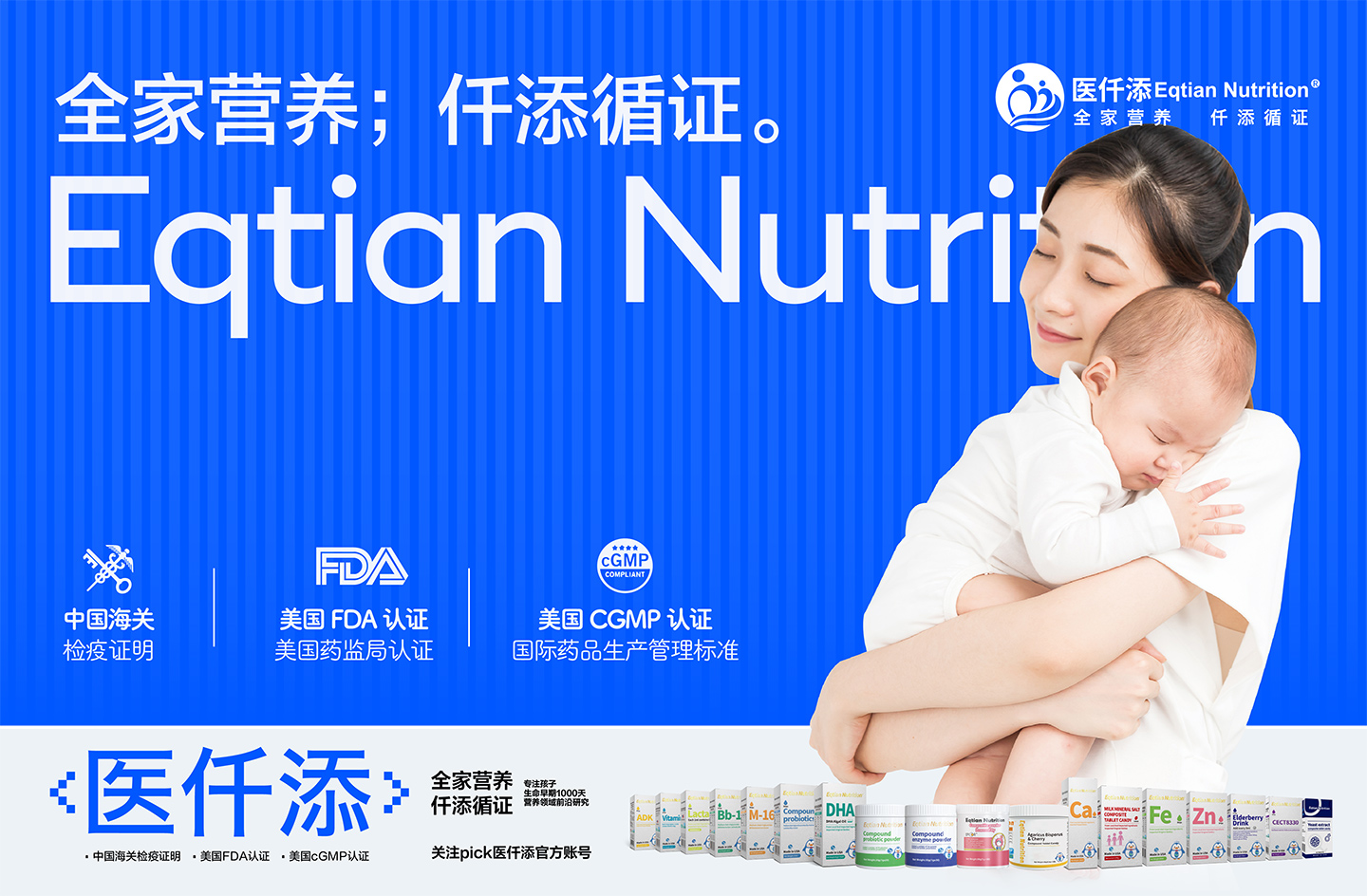Eqtian Nutrition醫(yī)仟添系列產(chǎn)品均來自美國EQTIAN NUTRITION INC.企業(yè)生產(chǎn),堅持采用天然原材料加工 ,嚴格把關(guān)每一道生產(chǎn)過程。產(chǎn)品都通過了美國權(quán)威FDA認證,按照美國cGMP(國際藥品生產(chǎn)管理標準)條例生產(chǎn)。醫(yī)仟添自成立以來,一直致力于對營養(yǎng)學(xué)與健康食品臨床研究與開發(fā)方面的努力探索,以科學(xué)的方式為千萬家庭傳播愛與健康,這是企業(yè)品牌文化使然,健康婦幼,營養(yǎng)先行。讓醫(yī)仟添守護每一個中國家庭的營養(yǎng)健康。愛之有道,計之深遠——為孩子,也為自己!