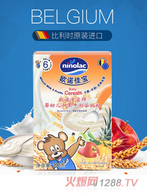歐諾佳寶米粉,選材在比利時(shí),生產(chǎn)也在比利時(shí),由上海添慶網(wǎng)絡(luò)科技股份有限公司引入國(guó)內(nèi)市場(chǎng)。根據(jù)東方人群飲食特征來(lái)設(shè)計(jì)配方,雜糧谷物、水果牛奶谷物、蔬菜、混合谷物和原味大米粉,一整個(gè)谷物果蔬大集合,滿足輔食添加期要求的膳食多樣化。這些谷物果蔬均為食品級(jí)原料,無(wú)農(nóng)藥、無(wú)污染、非轉(zhuǎn)基因,生產(chǎn)過程無(wú)防腐劑、增稠劑、色素及人工香精添加,不含糖。