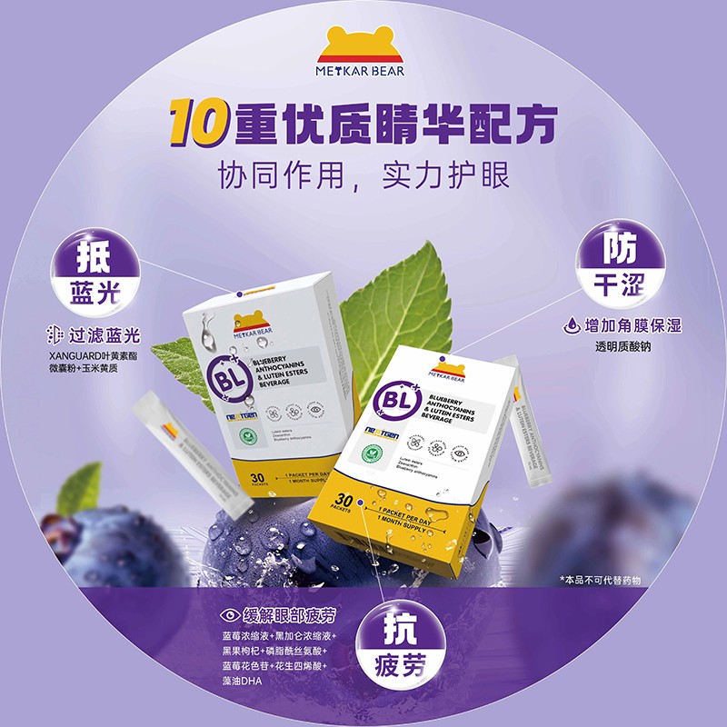 不僅如此,MEYKARBEAR美卡熊藍(lán)莓花色苷葉黃素酯飲品甄選了10大原料復(fù)合配方,多重天然營養(yǎng)呵護(hù),酸甜口感,喚醒味蕾,嘗得出的“潤”、“甜”、“鮮”。專治嘴饞、嘴刁的寶寶,全方位滋養(yǎng)寶寶的嬌嫩雙眼,為孩子的成長之路點亮一盞明亮的燈塔。