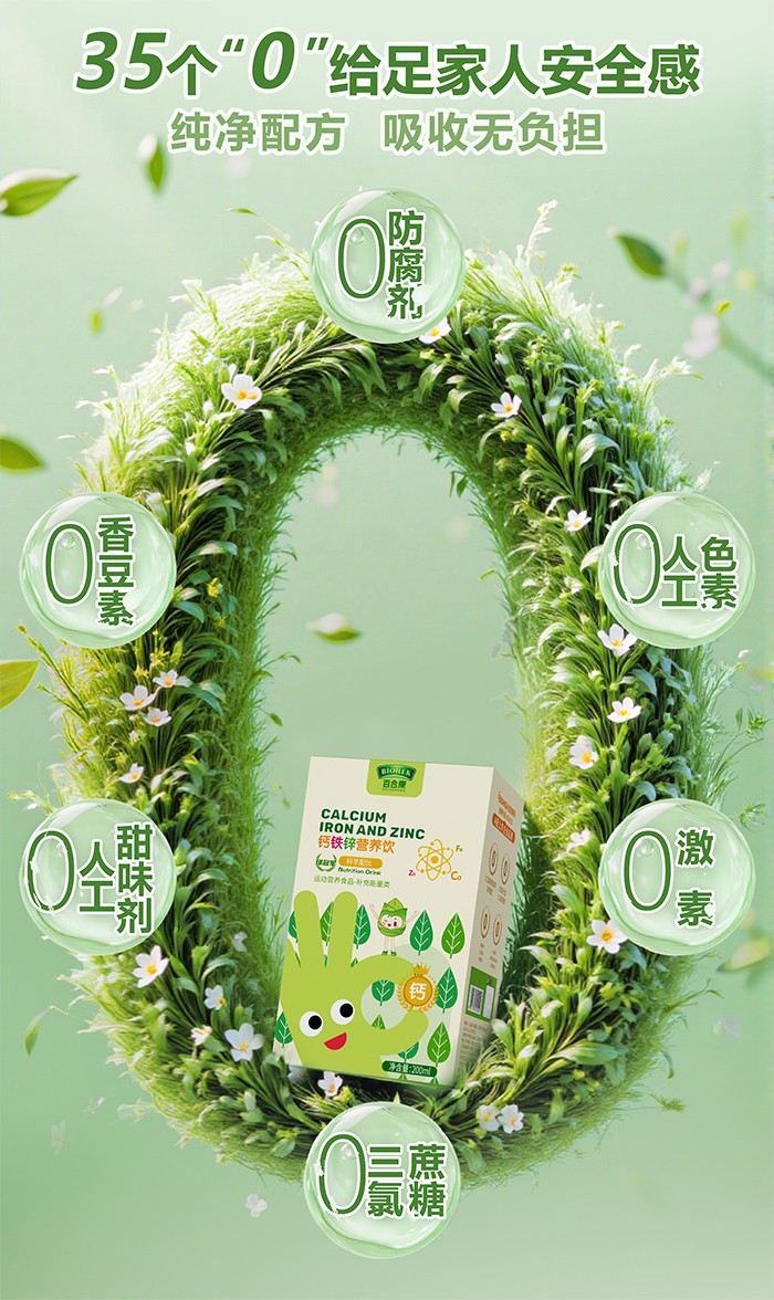 更值得一提的是,產品中特別添加了納豆成分,能自然帶來天然 K2(非化學合成 K2);同時融入 400IU 維生素 D3,為鈣的日常作用發(fā)揮提供助力。在成分安全性上,百合康綠冠軍鈣鐵鋅營養(yǎng)飲更是嚴格把控,實現(xiàn) 35 項 0 添加,不包含香精、甜味劑、色素與防腐劑,且在包裝上直接標識 0 添加,讓家長能清晰看到產品的純凈用心。此外,產品不含 18 項常見過敏原,敏感體質的孩子也能安心享用。