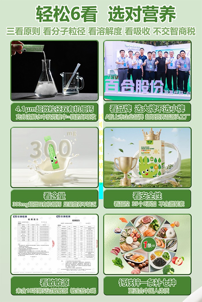這款營養(yǎng)飲在配方與工藝上暗藏諸多亮點。創(chuàng)新采用 4.1µm 超微粒徑設計,倒入水中便能快速溶解,無需長時間攪拌,日常沖調十分便捷。每一條中含有 300mg 雙有機細鈣,搭配雙鐵源與有機鋅,讓營養(yǎng)搭配更顯全面,為孩子帶來豐富的營養(yǎng)支持。