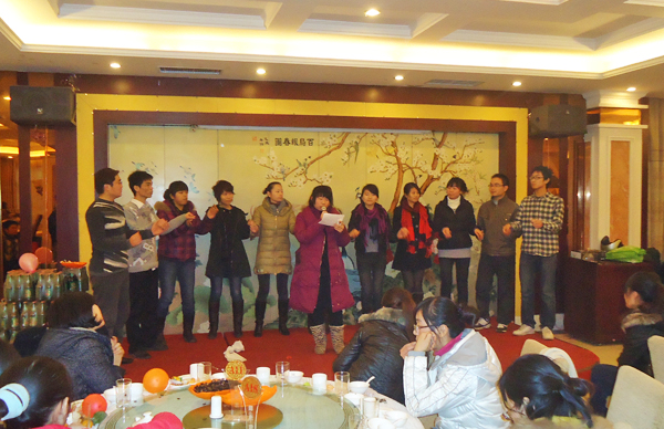 慶典現(xiàn)場,員工們正在欣賞節(jié)目