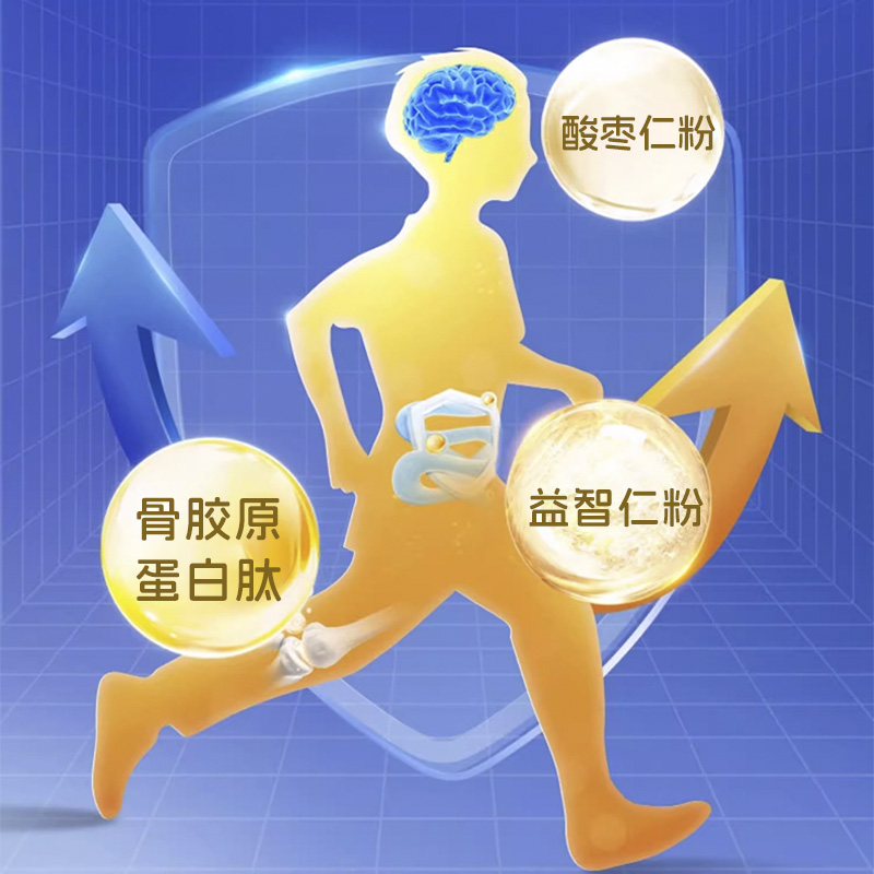 每袋添加Y-氨基丁酸250mg、骨膠原蛋白肽200mg、酸棗仁粉50mg