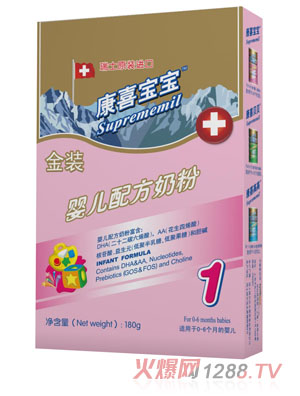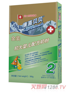 Suprememil系列配方奶粉(康喜bao--baoSuprememil 1、康喜貝貝Suprememil 2、康喜高高Suprememil 3),是由瑞士赫爾達夫營養(yǎng)食品有限公司生產(chǎn),由欣特峽商貿(mào)(上海)有限公司總經(jīng)銷。欣特峽商貿(mào)(上海)有限公司在食品、保健品、藥品、醫(yī)療儀器等領(lǐng)域提供采購、品牌營銷、物流、經(jīng)銷等一體化服務(wù)。