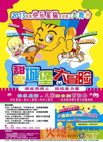 《快樂星貓——甜蜜城堡大冒險(xiǎn)》將于2013年11月23日正式與大家首見面啦!作為國產(chǎn)原創(chuàng)動(dòng)漫品牌,快樂星貓始終堅(jiān)持推陳出新,開發(fā)符合當(dāng)下時(shí)代需求的作品,同時(shí)也在積極的探索與成長中豐富自己的品牌內(nèi)涵。