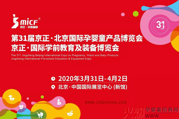 第31屆京正·北京國際孕嬰童產(chǎn)品博覽會、京正·國際學前教育及裝備博覽會將于2020年3月31日至4月2日在北京中國國際展覽中心(新館)召開。