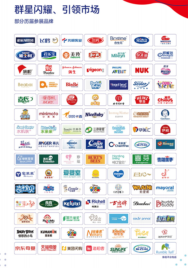 支持單位:中國優(yōu)生優(yōu)育協(xié)會、中華醫(yī)學(xué)會、中國貿(mào)促會商業(yè)行業(yè)分會、全國婦聯(lián)辦公廳、中國婦女兒童活動中心、中國關(guān)工委健體中心學(xué)雷鋒聯(lián)盟、全國衛(wèi)生產(chǎn)業(yè)企業(yè)管理協(xié)會兒童健康產(chǎn)業(yè)分會、中國國際展覽中心集團、《中國會展》雜志社、廣東省孕嬰童用品協(xié)會、云南省孕嬰童用品協(xié)會、河南省孕嬰童用品行業(yè)協(xié)會、山東省孕嬰童用品商會、海南省孕嬰童行業(yè)協(xié)會、貴州省兒童用品商會、廣西玩具和嬰童用品協(xié)會